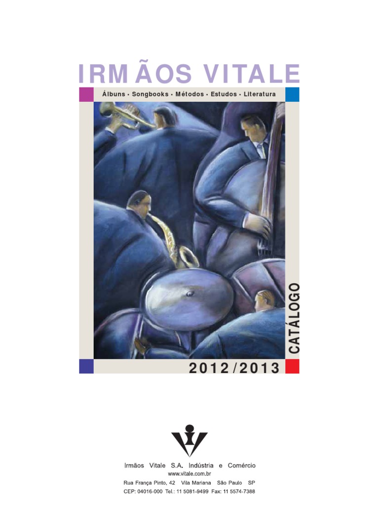 Songbook Caetano Veloso vol. 2 .......................................... 9 Songbook Carlos Lyra ................................................................ 9 Songbook Cazuza vol. 1 .......................................................... 9 Songbook Cazuza vol. 2 ........................................................ 10 Songbook Chico Buarque vol. 1 .......................................... 10 Songbook Chico Buarque vol. 2 .......................................... 10 Songbook Chico Buarque vol. 3 .......................................... 10 Songbook Chico Buarque vol. 4 .......................................... 10 Songbook Choro vol. 1 .......................................................... 18 Songbook Choro vol. 2 .......................................................... 18 Songbook Choro vol. 3 .......................................................... 18 Songbook Djavan vol. 1 ........................................................ 10 Songbook Djavan vol. 2 ........................................................ 10 Songbook Dorival Caymmi vol. 1 ........................................ 10 Songbook Dorival Caymmi vol. 2 ........................................ 10 Songbook Gilberto Gil vol. 1 ................................................ 11 Songbook Gilberto Gil vol. 2 ................................................ 11 Songbook Ivan Lins vol. 1 .................................................... 11 Songbook Ivan Lins vol. 2 .................................................... 11 Songbook Jammil e uma noites .............................................. 11 Songbook Joo Bosco vol. 1 ................................................ 11 Songbook Joo Bosco vol. 2 ................................................ 11 Songbook Joo Bosco vol. 3 ................................................ 11 Songbook Joo Donato ............................................................ 11 Songbook Marcos Valle .......................................................... 12 Songbook Nelson Motta .......................................................... 12 Songbook Noel Rosa vol. 1 .................................................. 12 Songbook Noel Rosa vol. 2 .................................................. 12 Songbook Noel Rosa vol. 3 .................................................. 12 Songbook Rita Lee vol. 1 ...................................................... 12 Songbook Rita Lee vol. 2 ...................................................... 12 Songbook Tom Jobim vol. 1 .................................................. 12 Songbook Tom Jobim vol. 2 .................................................. 12 Songbook Tom Jobim vol. 3 .................................................. 13 Songbook Toquinho .................................................................. 13 Songbook Vinicius de Moraes vol. 1 .................................. 13 Songbook Vinicius de Moraes vol. 2 .................................. 13 Songbook Vinicius de Moraes vol. 3 .................................. 13 Sopro novo Yamaha aprendendo a ler msica .................. 49 Sopro novo Yamaha conjunto .............................................. 40 Sopro novo Yamaha contralto .............................................. 40 Sopro novo Yamaha saxofone bandas ............................ 43 Sopro novo Yamaha soprano .............................................. 40 Sopro novo Yamaha trompete bandas ............................ 43 Sute do bailado quebra nozes op. 71-A ............................ 25 Sute infantil ................................................................................ 56 Tcnica para contrabaixo eltrico ........................................ 37 Telecountry ................................................................................ 36 Teoria musical ............................................................................ 49 Teoria musical para crianas .................................................. 56 Tocando com Jacob .................................................................. 13 Toque junto baixo .................................................................. 38 Toque junto guitarra .............................................................. 38 Toque junto bossa nova baixo eltrico .............................. 38 Toque junto bossa nova bateria .......................................... 45 Toque junto bossa nova violo ............................................ 33 Tratado de regncia .................................................................. 49 Tupan .......................................................................................... 39 Valsas de Strauss ...................................................................... 25 Velhas canes de minha infncia ........................................ 56 Vinte peas fceis .................................................................... 23 Viola caipira estudo dirigido ................................................ 35 Viola caipira instrumental ........................................................ 35 Violino primeiros passos ...................................................... 39 Vocabulrio do choro .............................................................. 52 Waldir Azevedo .......................................................................... 59 Waldir Azevedo: o mestre do cavaquinho ............................ 13