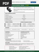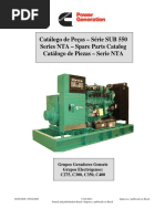 Modelo NTA855-G5 Injeo Direta em Linha 6 cilindros Tipo Arrefecido a gua, 4 tempos, turbinado Construo 4 vlvulas por cilindro, virabrequim e bielas em ao forjado, bloco em ferro fundido Partida 24 V com negativo aterrado. Alternador de carga da bateria de 35 A no motor. Corrente de arranque do motor de partida de 640 A com 0 C. Sistema de Combustvel Vlvula solenide de 24 V Sistema Cummins de bomba injetora de combustvel com governador eletrnico Filtros Filtro de ar com elemento seco e indicador de restrio Filtro de combustvel separador de gua Filtro de leo lubrificante roscado de fluxo total Arrefecimento Temperatura ambiente mxima de 45 C com radiador padro Resfriador de leo, Bujo do Dreno