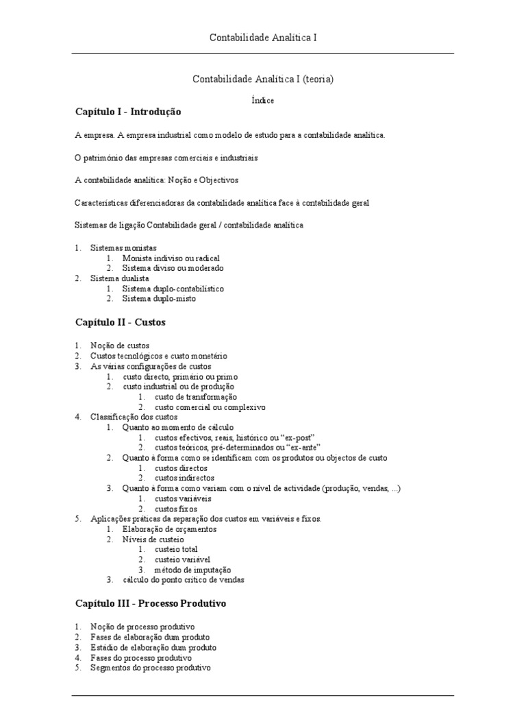 Contabilidade Analítica - pretendendo tratar a informação interna das empresas para gestão e tomada de