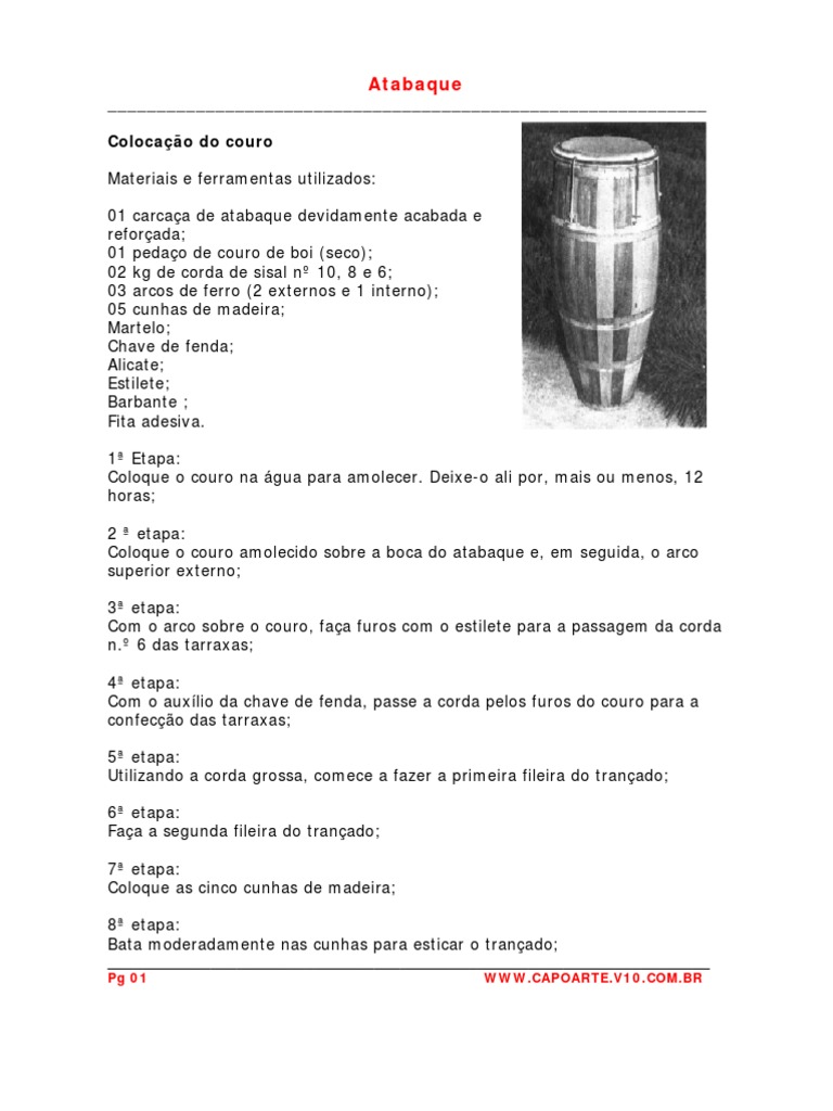 Coloque o couro amolecido sobre a boca do atabaque e, em seguida, o arco