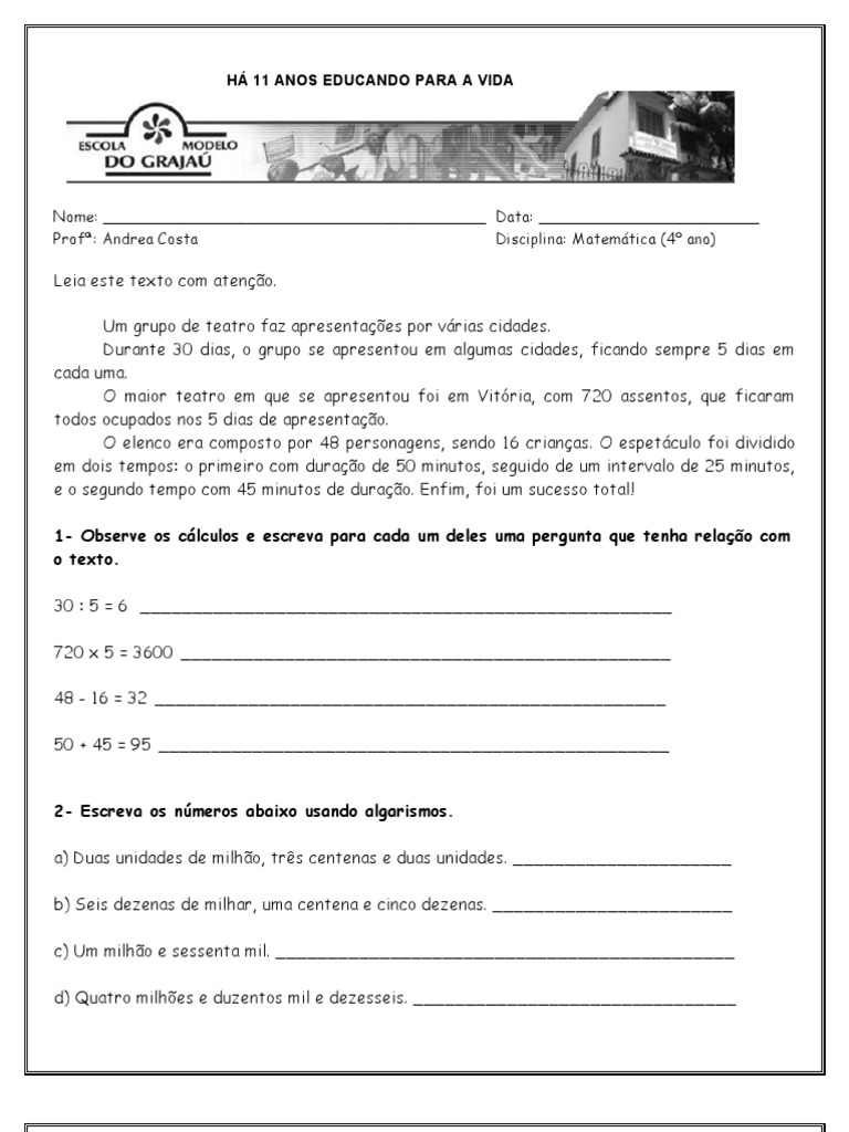 d) Quatro milhes e duzentos mil e dezesseis. _______________________________