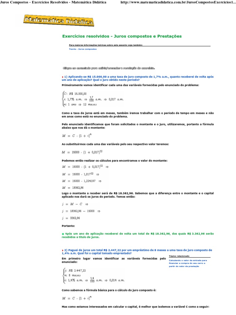 Juros Compostos - Exerccios Resolvidos - Matemtica Didtica