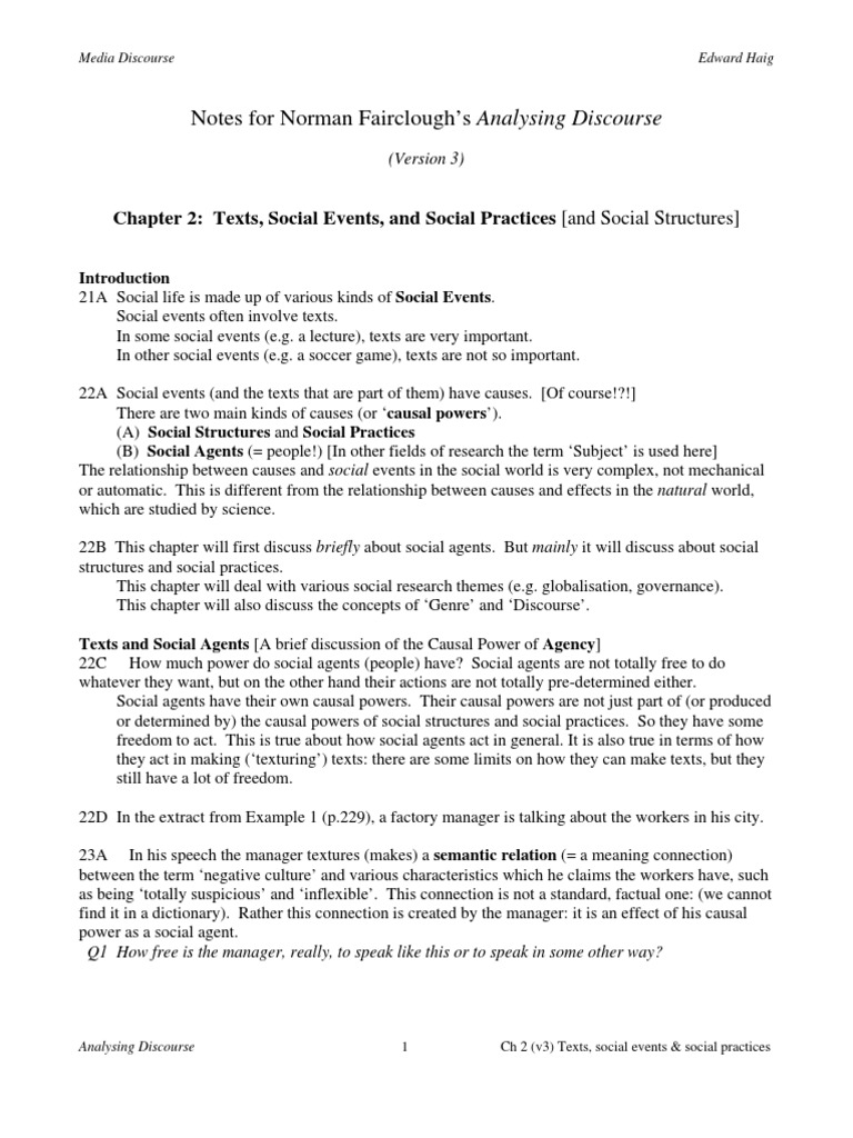 Analysing Discourse 3 Ch 2 (v3) Texts, social events & social practices