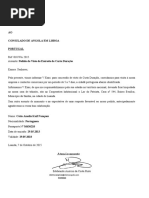 (1) Minuta: Exmo. Senhor Director Nacional dos Servios de Viao e Trnsito de Luanda (Nome), natural de., de .. anos de idade, titular da carta de conduo n , emitida em . Aos.. e vlida at Vem por este meio solicitar ao Sr. Director, que se digne mandar passar uma declarao que comprove a autenticidade da referida carta de conduo passada em seu nome. Espera deferimento. Lisboa, aos . de de ..