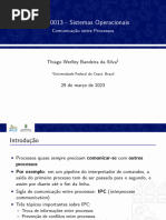 Exerccios Obtenha o ficheiro ficha-sinais-ficheiros.tar.gz e extraia o seu contedo para um diretrio de trabalho sua escolha. Gere os executveis, escrevendo make na shell. 1.1) Analise o cdigo do ficheiro ex1.c. Execute este programa, utilizando o comando "./ex1" . Use a combinao ctrl+c para enviar o sinal SIGINT ao programa. Por default, quando um processo recebe este sinal, termina. 1.2) Execute este programa, utilizando o comando "./ex1 &" de forma a coloc-lo em execuo de "segundo plano" (background). A partir da shell, execute o comando kill pid (envio do sinal SIGTERM), onde pid o identificador do processo que pretende terminar (neste caso, ser o identificador do processo correspondente ao programa ex1). Verifique com o comando ps se o processo realmente terminou. 2.1) Analise o cdigo do ficheiro ex2.c. Execute o programa ex2 em background. Repita o procedimento da alnea 1.2. Justifique as diferenas de comportamento entre os dois programas. 2.2) Execute o comando kill -USR1 pid, onde pid o identificador do processo correspondente ao programa ex2. Explique o resultado.