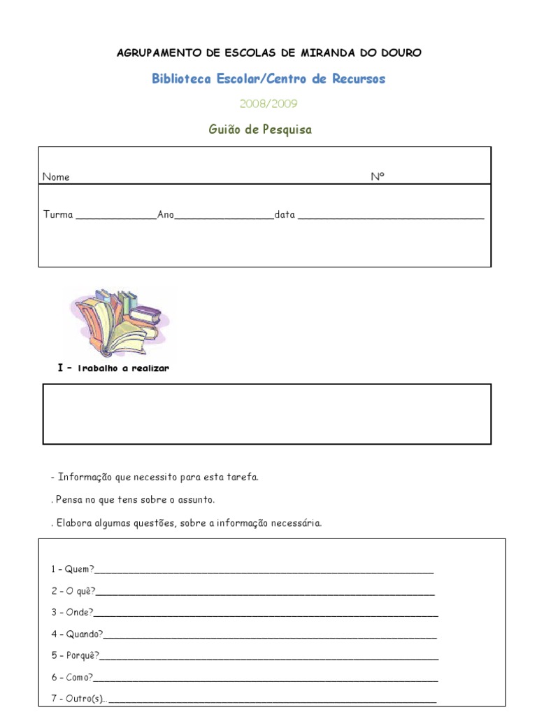 V – Materiais de que vou necessitar para recolher a informação, elabora e