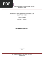 O estgio realizado no Centro de Referncia Especializado da Assistncia Social CREAS foi de grande importncia, pois possibilitou vivenciar na prtica os assuntos abordados em sala de aula e que os conhecimentos adquiridos fossem expostos. Como acadmica de Servio Social, pode se identificar o alto ndice de denuncias contra a pessoa idosa e por isso a escolha do tema Violncia contra o idoso no contexto familiar, um estudo no contexto do CREAS de Jacobina, que trar ainda mais conhecimento e experincia, devido o envolvimento da instituio e a elaborao do trabalho. Para a instituio o estgio uma oportunidade de trazer para dentro da mesma, estudantes com conhecimento considerado, acadmicos que esto em busca de experincia e aceitao no mercado de trabalho. Quanto ao tema a ser trabalhado, pode se afirmar que ser de muita valia para a instituio, pois atualmente se sabe da grande demanda de violncia contra a pessoa desse segmento etrio. O estgio para a instituio de ensino pode se comprovar que uma maneira de fazer com que os acadmicos levem seus conhecimentos no s para a sala de aula, mas que tambm ponha em prtica no dia a dia das instituies. Possibilitando dessa forma, vivenciar as rotinas dirias de uma instituio, adquirindo informaes e trocando experincias na sala de aula das mais diversas situaes vividas.