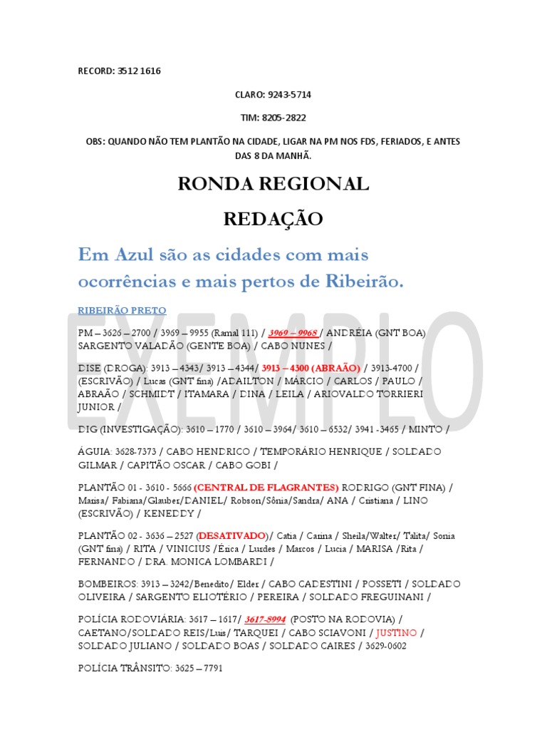 OBS: QUANDO NO TEM PLANTO NA CIDADE, LIGAR NA PM NOS FDS, FERIADOS, E ANTES