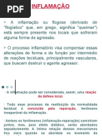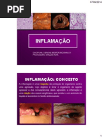Inflamao a resposta protetora dos tecidos vascularizados contra um irritante com o objetivo de destruir, diluir ou bloquear este agente agressor. Reao normal do organismo Sinais Cardinais: DOR, RUBOR, CALOR, TUMOR