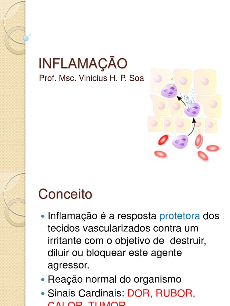 PORTANTO A inflamao visa a proteo do local afetado, eliminao da causa e reparao tecidual