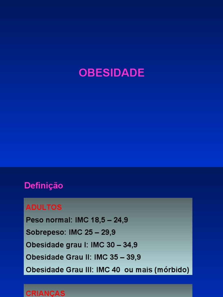 Obesidade Grau III: IMC 40 ou mais (mórbido)