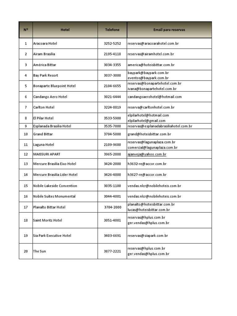 Email para reservas reservas@[Link] reservas@[Link] america@[Link] baypark@[Link] eventos@[Link] reservas@[Link] ivana@[Link] candangoaerohotel@[Link] reserva@[Link] elpilarhotel@[Link] elpilarhotel@[Link] reservas@[Link] grand@[Link] reservas@[Link] comercial@[Link] ajanveja@[Link] h3632-re@[Link] h3627-re@[Link] [Link]@[Link] [Link]@[Link] planalto@[Link] lucas@[Link] reservas@[Link] [Link]@[Link] reservas@[Link] reservas@[Link] [Link]@[Link]