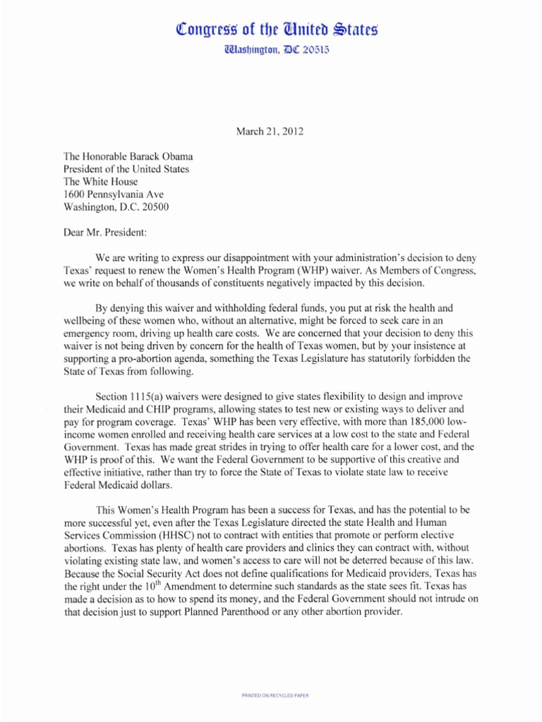 Texas Womens Health Program Letter