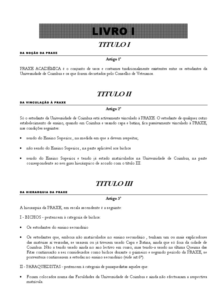 estabelecimento de ensino, quando em Coimbra e usando capa e batina, fica passivamente vinculado à PRAXE,