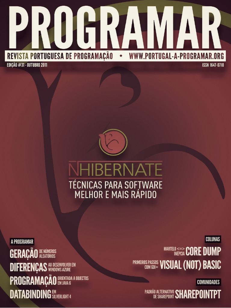 Antnio Silva <antonio.silva@revista-programar.info> A revista PROGRAMAR um projecto voluntrio sem fins lucrativos. Todos os artigos so da responsabilidade dos autores, no podendo a revista ou a comunidade ser responsvel por alguma impreciso ou erro. Para qualquer dvida ou esclarecimento poder sempre contactar-nos.