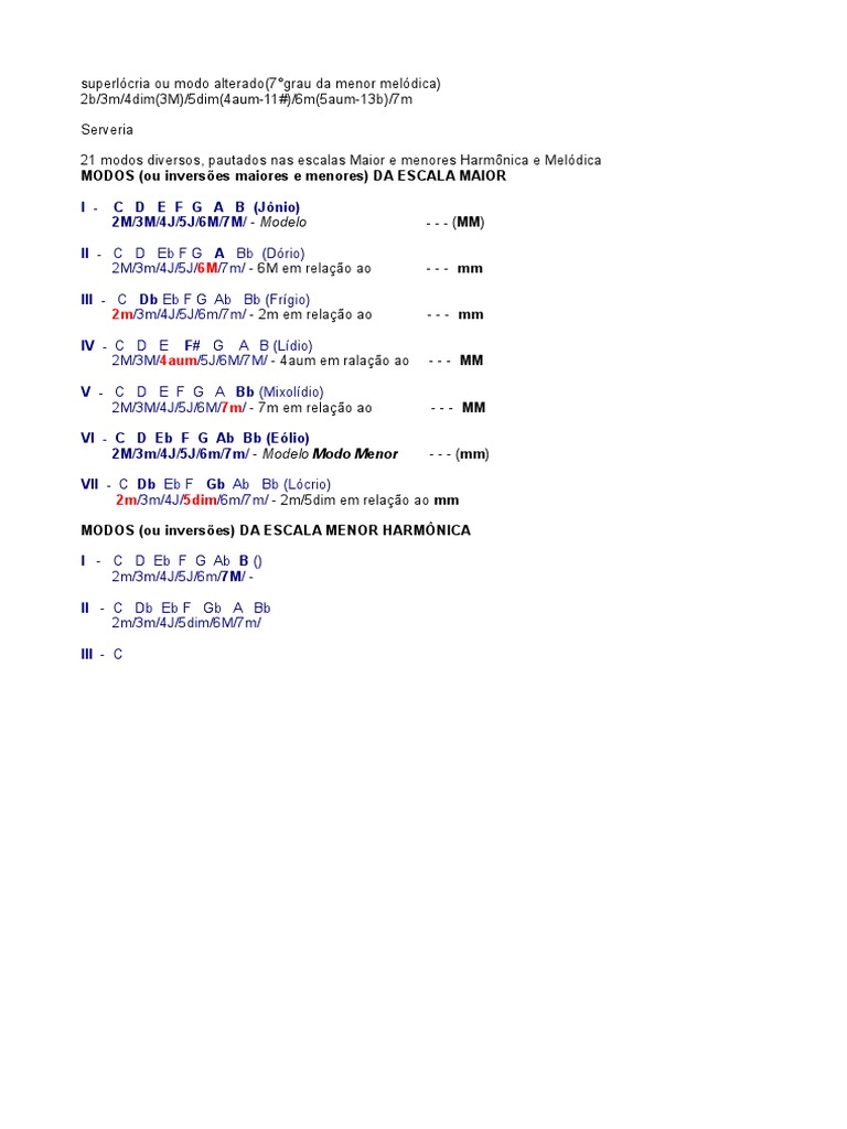 21 modos diversos, pautados nas escalas Maior e menores Harmnica e Meldica