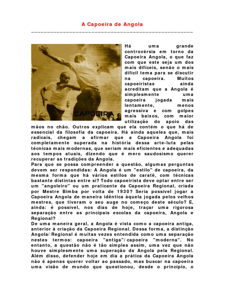 devem ser respondidas: A Angola é um "estilo" de capoeira, da