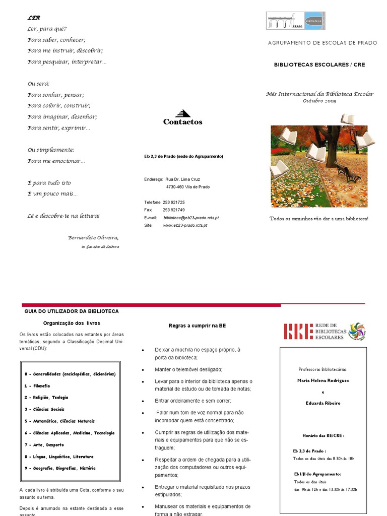 Lê e descobre-te na leitura! E-mail: biblioteca@eb23-prado.rcts.pt Todos os caminhos vão dar a uma biblioteca!