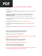 Qual o porto de embarque do vo ... ? What is the boarding gate? Que horas sai/chega o nibus para ...? What time the bus pass?/the bus live? Que horas sai o prximo nibus? What time is the next bus? Qual o preo da passagem? How much is the ticket? Quanto tempo demora para ir a ... ? How long does it takes? Onde posso comprar uma passagem Where can I buy ticket? O nibus/avio est atrasado? The bus/plane is late. (The flight is delay) Este assento/(esta) cadeira/(esta) poltrona est vazia? Is this/that place/chair/seat empty? Posso abrir/fechar a janela? Can I open/close the window? 32