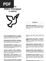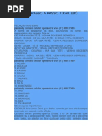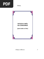 %* - PARA TIRAR FEITIO E MALDI;ES. +acrifica-se dois pombos brancos # cabea da pessoa. $oloca-se as penas do pombo sobre o san(ue derramado na cabea da pessoa e sobre elas uma camada de al(odo. &marra-se com um pano branco. %+ - PARA TIRAR V$"IO DE BEBIDA. @ara acabar com este mal, fa -se eb" com um (alo, duas (alinhas, ot/, pano branco e pano vermelho. &, - PARA QUE UMA VIA!EM TRANS"ORRA BEM. +e a pessoa tem uma via(em pro(ramada ter que, antes de partir, fa er eb" com dois (alos, duas (alinhas, uma escova, uma faca de uso, p" de e* e de e?1. Tudo passado no corpo da pessoa e a faca e a escova permanecem no assentamento de 2x1 at sua volta. &1 - PARA TIRAR A ATENO DOS INIMI!OS. @e(a-se um carvo (rande, unta-se de ep5, escreve-se os nomes dos inimi(os e se deixa no i(b de 2x1. &2 - PARA [Link] FEITIOS E MA"UMBAS. Tem que dar comida # cabea e oferecer (ua de aca a Obatal, Ban(5 e Oxun. & - SE!REDO PARA APA!AR OS RASTROS DO ODU 8uando a pessoa termina de fa er eb" por este caminho, pe(a um pouco de farinha de aca, inscreve sobre ela o si(no de Os )e*i, leva o tabuleiro at a porta de casa e ali, com o tabuleiro apoiado nos braos, d-lhe uma pancada e di . O" .oni, O"awnrin, O" 4eta. 2m se(uida sopra o p" para fora. &% - PARA TIRAR E!UN DE DENTRO DE "ASA. @repara uma pasta com a eite de oliva, a eite de dend7, p" de peixe fresco, p" de efun, p" de atar, folhas de eAe tete ;Kredo branco< picadas e dois cocos ralados. Cepois de bem misturada, pe(a-se a massa obtida e se espalha por toda a casa e, # meia-noite, varre-se tudo para a rua e continua-se varrendo at a pr"xima esquina. 2ste trabalho para limpar a casa de todas as coisas ruins que possam estar dentro dela. && - PARA QUE UM DOENTE FIQUE BOM. Fm (alo, um pombo, um pre, um pedao de talo de uma planta de 0Heman*. Deva-se o eb" ao mar e antes de lev-lo, coloca-se Ban(5 ao lado de 0Heman* com duas velas acesas. &6 - EB PARA ABRIR "AMIN)OS Fm (alo, um rabo de cavalo, um of de ferro, duas (alinhas, um ovo de (alinha caipira, p" de e?1, p" de e*, etc. &( - EB PARA AFASTAR A MIS/RIA. Fm (alo, dois ob/s, duas cabaas, seis folhas de babosa, diversos tipos de cereais, uma roupa velha e usada. &* - EB PARA ADQUIRIR FORTUNA. Fm (alo, tr7s peixes frescos, uma (alinha, um pombo, um an ol, uma tbua de madeira em forma de tabuleiro, diversos tipos de cereais. Cespacha-se tudo em cima da tbua. &+ - SE!URANA "OM #AN!-. 4isca-se Os )e*i num pouco de farinha de aca, coloca-se dentro de um saquinho e se amarra o saquinho no cabo de uma faquinha de madeira. 2nvolve-se tudo com contas de Ban(5 e se coloca, para sempre, na (amela do Orix.