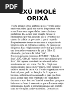 *o(o. & cabea do cabrito espetada na ponta do pau que depois de totalmente untado com ep5 espetado no cho. O (alo sacrificado no p do pau espetado na terra. (1 - PARA [Link] PA"TO "OM E!UN NO "AMIN)O DE OS. 'este caminho se d dois (alos brancos a 2(un Kabar para obter sua proteo. (2 - PARA TER SORTE NA VIDA. & sorte vem quando se d dois (alos brancos # 0Heman*. & pessoa tem que fa er bor/ com dois pombos e indispensvel, durante a cerim5nia, a presena de dois filhos de Obatal. ( - PARA A!RADAR BABA E!UN. &os ps de uma rvore seca ou que possua um buraco no tronco, acende-se nove velas e coloca-se nove sarae?", dentro de uma ti*ela, para Kab 2(un. (% - PARA LIMPE.A DE "ORPO. +e fa eb" com cereais, frutas e pedaos de carne. (& - PROTEO EM OS MEJI. $oloca-se um pouco de areia no cho e marca-se este Odu. +obre a areia coloca-se um al(uidar com um pequeno furo em baixo, dentro do qual se coloca sarae?" e quatro penas de e?odid, para que escorra o sarae?" sobre a areia. 8uando o al(uidar estiver va io, recolhe-se a areia, coloca-se dentro de uma panela de barro com tampa, prende-se as penas de e?odid sobre a tampa e coloca-se a panela no telhado de casa. (6 - PARA "ALAR A BO"A DE UM FALADOR. @e(a-se uma l/n(ua bovina fresca, abre-se ao meio e coloca-se ali. O nome da pessoa escrito em papel de embrulho dobrado nove ve es, nove (ros de pimenta do reino, nove a(ulhas, p" de osun, nove pedacinhos de casca de ir5?o, nove (ros de pimenta da costa, nove (ros de milho torrado, a eite de dend7, p" de e* e de e?1. &marra-se bem, enrolando a l/n(ua toda com linha vermelha. Ceixa-se, de um dia para o outro nos ps de 2x1 e depois se leva a um p de flamboaHant e se pendura em seu tronco ou num (alho alto. ;@ode-se pendurar em qualquer rvore mas o flamboaHant a mais indicada<. (( - DEFESA "ONTRA FEITIOS. @e(a-se uma quartinha de barro, J: taliscas de dende eiro, farinha de aca e al(odo em rama. 'a ponta de cada talisca de dende eiro enrola-se um pouco de al(odo, formando uma espcie de cotonete. $oloca-se a farinha de aca dentro de um prato, marca-se o si(no de Os )e*i e re a-se o Odu. 2m se(uida, pe(a-se cada talisca, molha-se o al(odo na saliva, diretamente na boca, passa-se sobre a farinha contida no prato e coloca-se dentro da quartinha com a bolinha de al(odo para cima. Cepois de prontas as J: taliscas, coloca-se a quartinha em cima do telhado como defesa contra feitios. 2ste fetiche no s" serve para absorver os feitios mandados, como tambm devolve-os para seu ponto de ori(em.