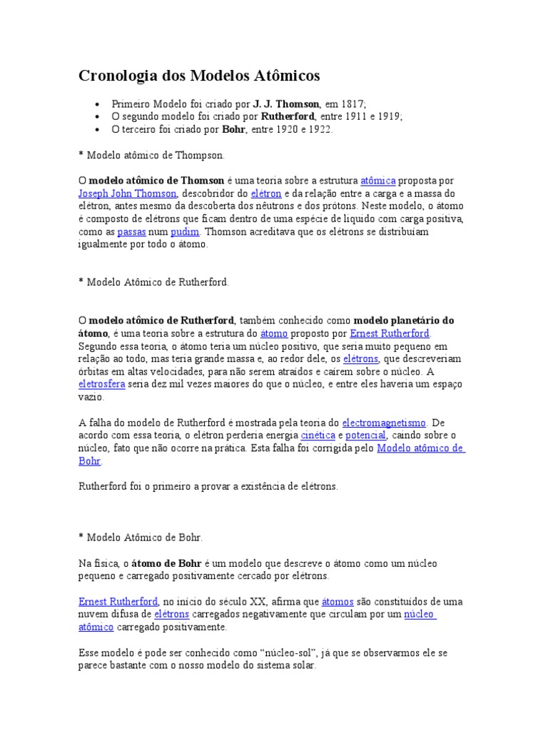 Cronologia dos Modelos Atômicos