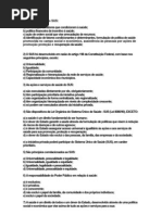 ,0) A *ierar7ui6ao dos ser(ios " uma das diretri6es do Sistema nico de Sade$ Para atingi;la, um im#ortante a) distribuir os &ormul)rios de Declarao de Rbito #ara as Unidades :oti&icadoras? instrumento " a: b) reali6ar busca ati(a das declara2es #reenc*idas nas Unidades :oti&icadoras? a) im#lantao de um sistema de re&er5ncia e contra c) elaborar o .anual de 4 nst ru2es #ara o re&er5ncia? Preenc*imento da Declarao de Rbito? b) regionali6ao das a2es e ser(ios? d) digitar os dados constantes nas declara2es? c) de&inio da normati6ao institucional? e) remeter os dados #ara a inst8ncia estadual$ d) integrao com outros setores da economia? e) otimi6ao dos recursos dis#on(eis$ ,H) Segundo a Eei nN 81282392, a e-ecuo dos ser(ios de )igil4ncia 5pidemiol/gica " de com#et5ncia: , > ) S o ,oenas e $gravos de -[Link] Compuls/ria no territ9rio nacional, EJ1E'O: a) do .inist"rio da Sade, com colaborao do .inist"rio do .eio Ambiente? a) c9lera? b) da /undao :acional de Sade e das Secretarias b) e(entos ad(ersos #9s;(acinao? Estaduais de Sade? c) *anta(irose? c) da Direo .unici#al e, em car)ter com#lementar, da d) rub"ola? Direo Estadual do SUS? e) to-o#lasmose$ d) das Secretarias .unici#ais de Sade e da iniciati(a #ri(ada? ,@) .edicamentos estrat"gicos so a7ueles utili6ados e) de /unda2es e Sociedades Kene&icentes$ #ara o tratamento de um gru#o de agra(os es#ec&icos, agudos ou crFnicos, contem#lados em #rogramas do ,A) Das estrat"gias #ro#ostas #elo go(erno &ederal, a7uela .inist"rio da Sade com #rotocolos e normas 7 u e t e m o .inanciamento previsto no com#onente estabelecidas, cu+o elenco " de&inido #elo #r9#rio (ari)(el do #iso da $teno %&sica '#$%( ": .inist"rio$ Podemos di6er 7ue so e-em#los de programas abrangidos pela Coordenao 0eral de $ s s i s t ! n c i a F a r m a c ! u t i c a d e + e d i c a m e n t o s a) agentes comunit)rios de sade? b) &arm)cia #o#ular? estrat"gicos: c) educao #ermanente? d) (igil8ncia em sade? a) Eliminao da Pansenase e Plane+amento /amiliar? e) bolsa &amlia$ b) 1ontrole do 'abagismo e DS'DA4DS? c) 1ontrole da 'uberculose e Acromegalia? ,C) S direo municipal do *istema 6nico de d) Pi#ertenso e Diabetes? *ade, com#ete: e) E#us Eritematoso e Pe#atite 1$ ,G) O documento de entrada do Sistema de 4n&orma2es sobre :ascidos 3i(os " a Declarao de :ascido 3i(o, documento im#resso em 0 !tr5s) (ias #re(iamente numeradas$ :o caso de #arto *os#italar, a 1Q !#rimeira) (ia tem como destino: a) a e-ecuo de ser(ios de sade do trabal*ador? b) a (igil8ncia sanit)ria de #ortos e aero#ortos? c) a coordenao da rede de laborat9rios de sade #blica e *emocentros? d) o &inanciamento #leno dos recursos #ara o setor de sade local?