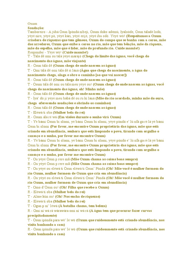 R - Tl d yy e l sum m g t (Me chega do comeo das guas, golpeia Oxum, mas