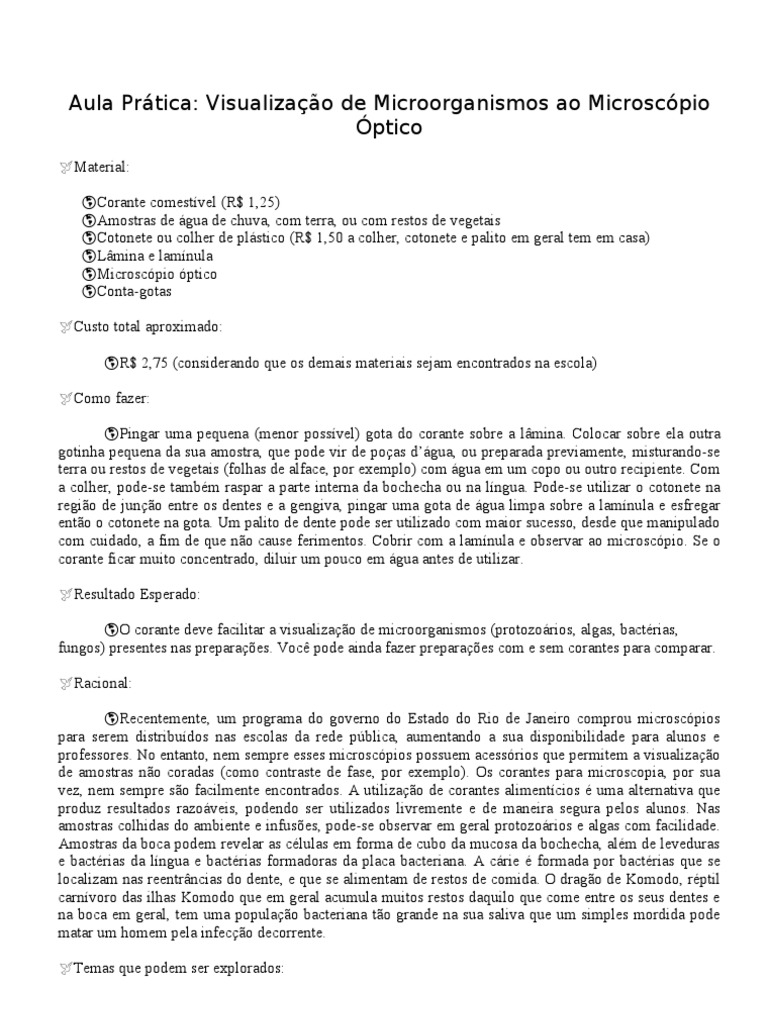 Aula Prática: Visualização de Microorganismos ao Microscópio