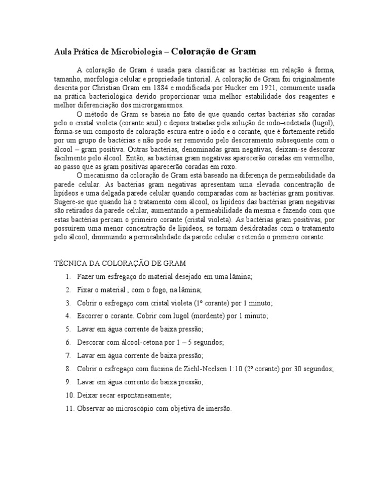 descrita por Christian Gram em 1884 e modificada por Hucker em 1921, comumente usada