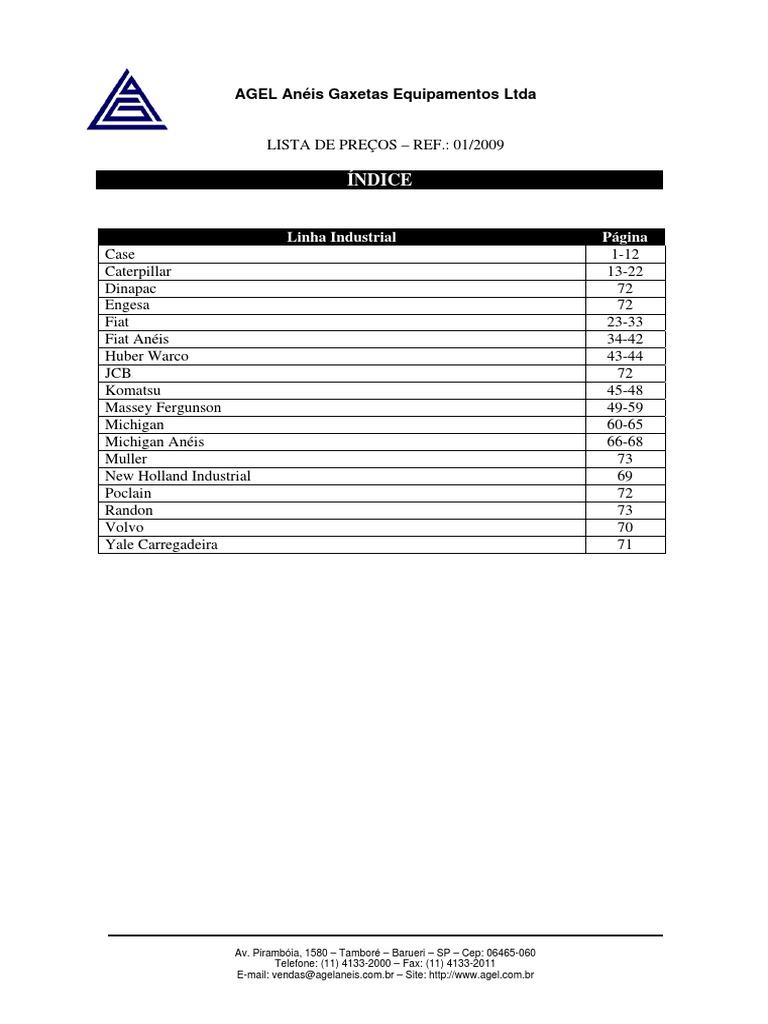 Lista de Preços AGEL 01/2009