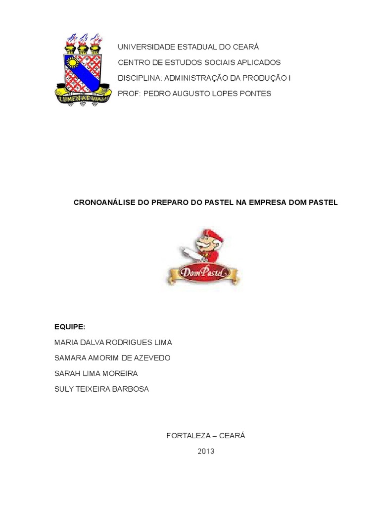 CRONOANLISE DO PREPARO DO PASTEL NA EMPRESA DOM PASTEL