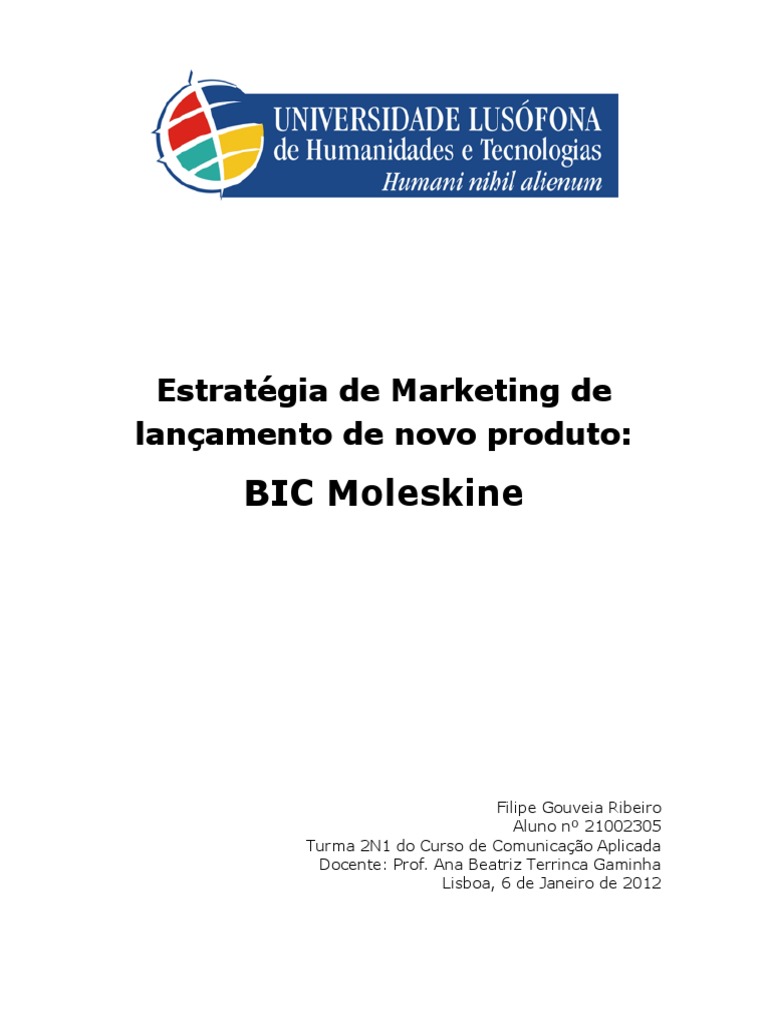 Estratgia de Marketing de lanamento de novo produto: BIC MOLESKINE