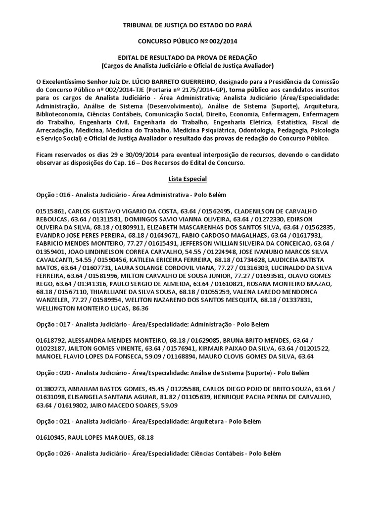 Opo : 018 - Analista Judicirio - rea/ Especialidade: Administrao - Polo Castanhal