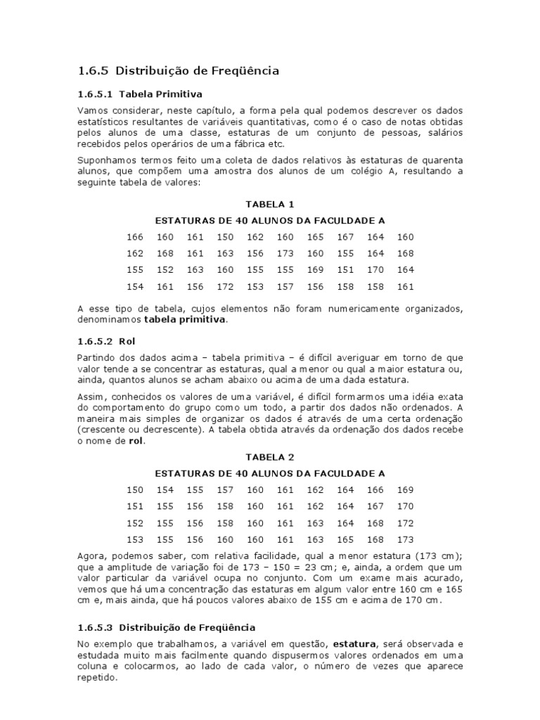 que a amplitude de variação foi de 173 – 150 = 23 cm; e, ainda, a ordem que um