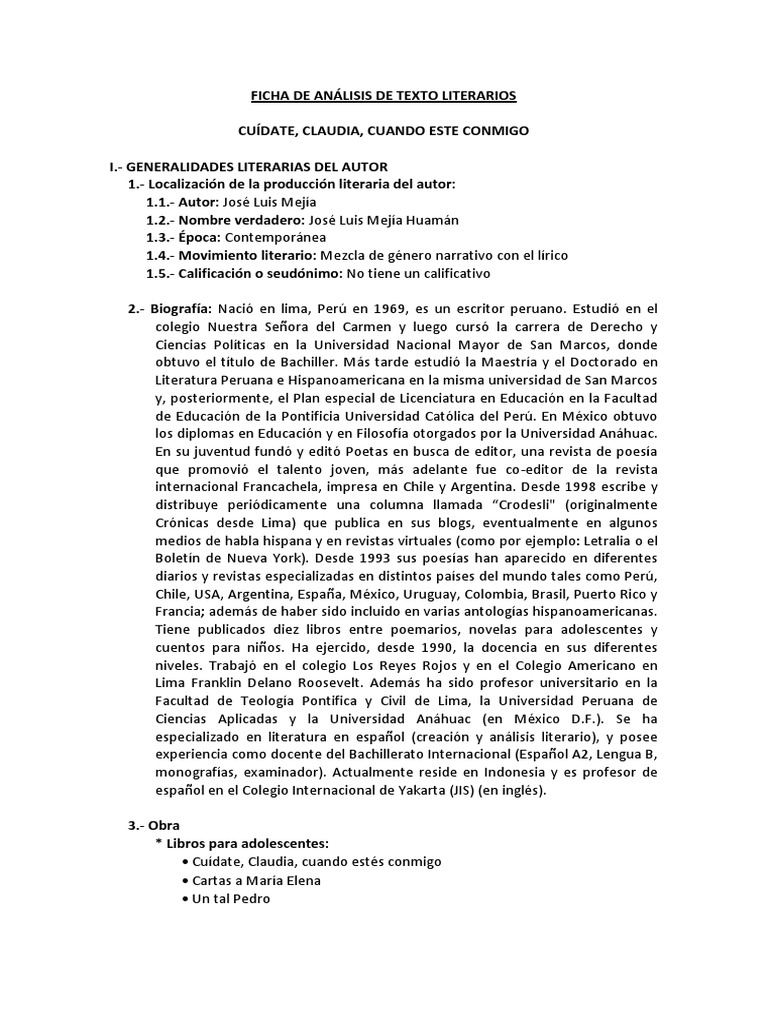 1.- Título de la obra: Cuídate, Claudia, cuando estés conmigo.