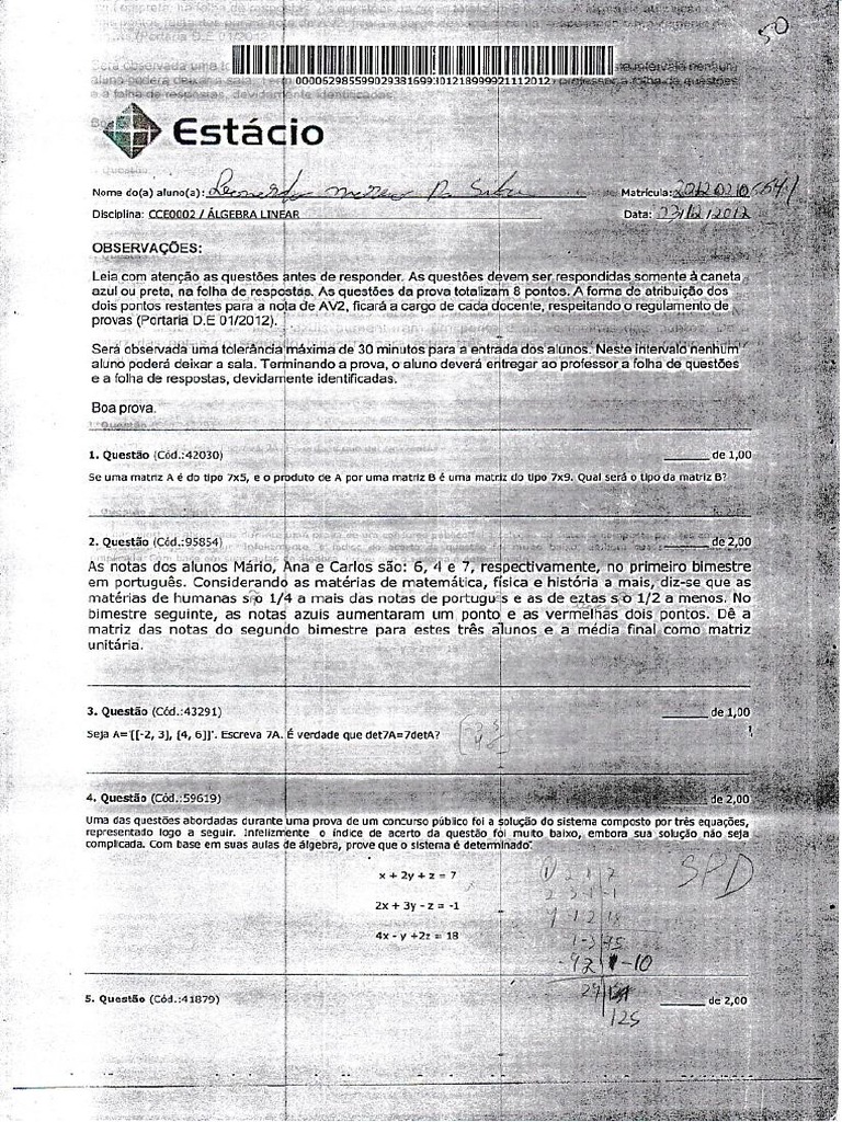 AV2 - Álgebra Linear PDF