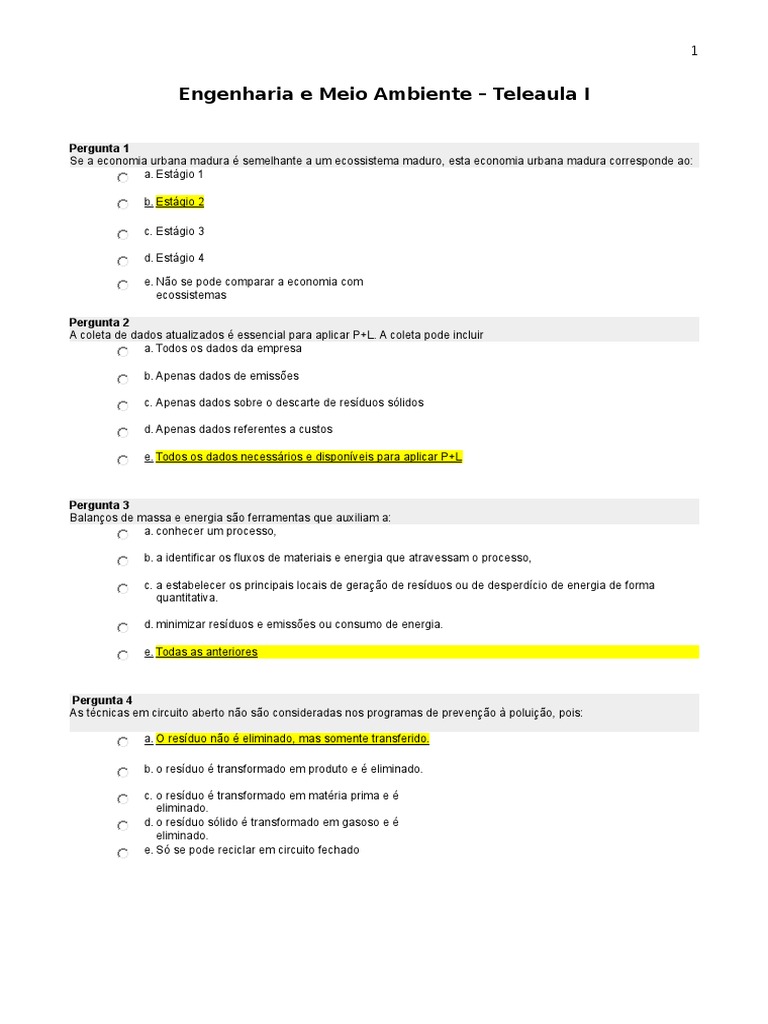 Questionrio I Engenharia e Meio Ambiente