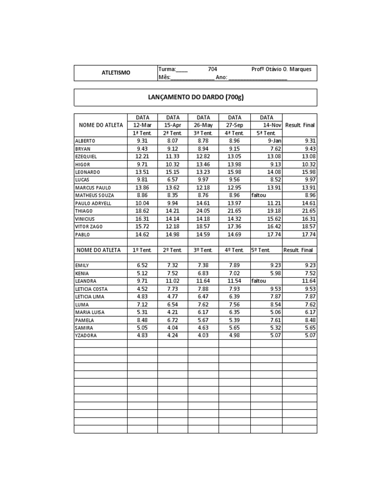 NOME DO ATLETA