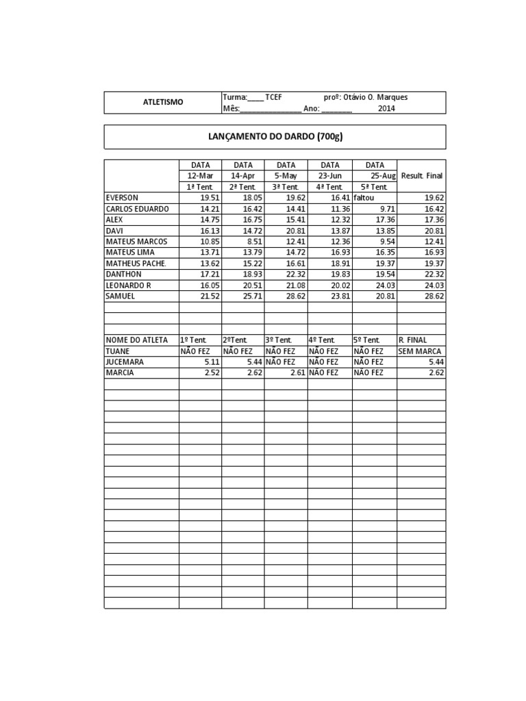 NOME DO ATLETA