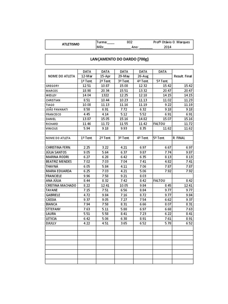 NOME DO ATLETA