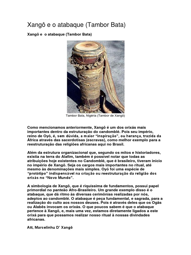 Para um melhor esclarecimento sobre a ligao de Xang com o tambor,