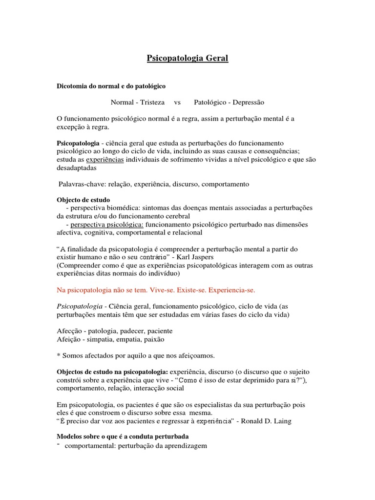 Psicopatologia - Cincia geral, funcionamento psicolgico, ciclo de vida (as
