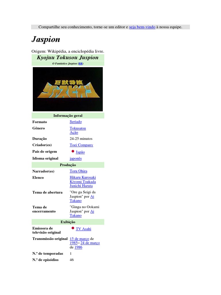 Fantstico Jaspion) uma srie de televiso japonesa do gnero tokusatsu, pertencente