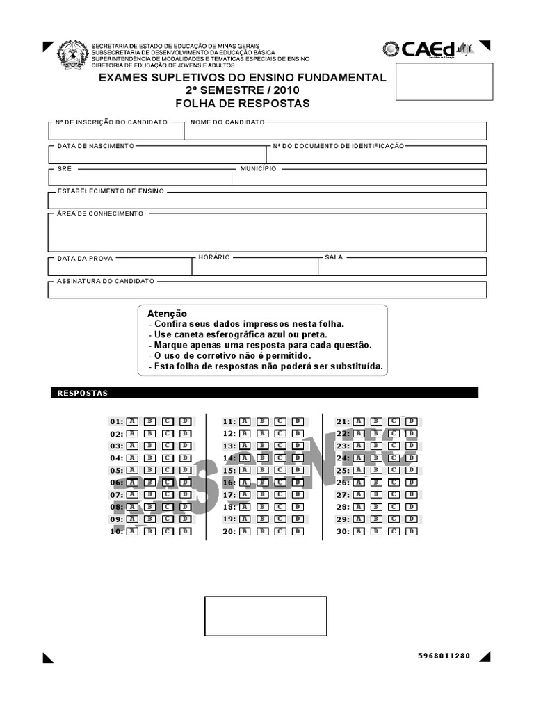EXAMES SUPLETIVOS DO ENSINO FUNDAMENTAL