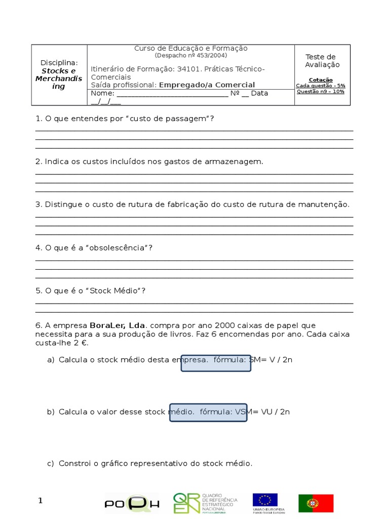 6. A empresa BoraLer, Lda. compra por ano 2000 caixas de papel que