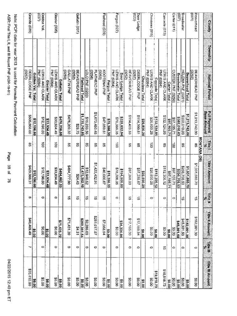 A breakdown of SRS payments to Montana counties for fiscal year 2014.