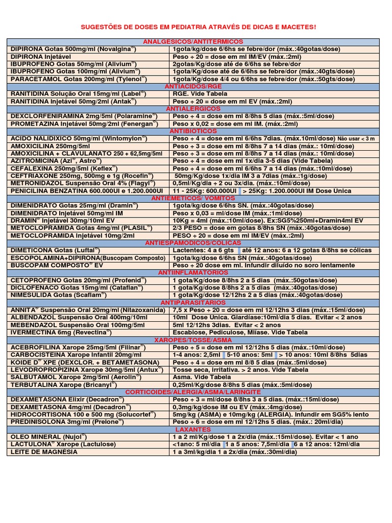 SUGESTES DE DOSES EM PEDIATRIA ATRAVS DE DICAS E MACETES!