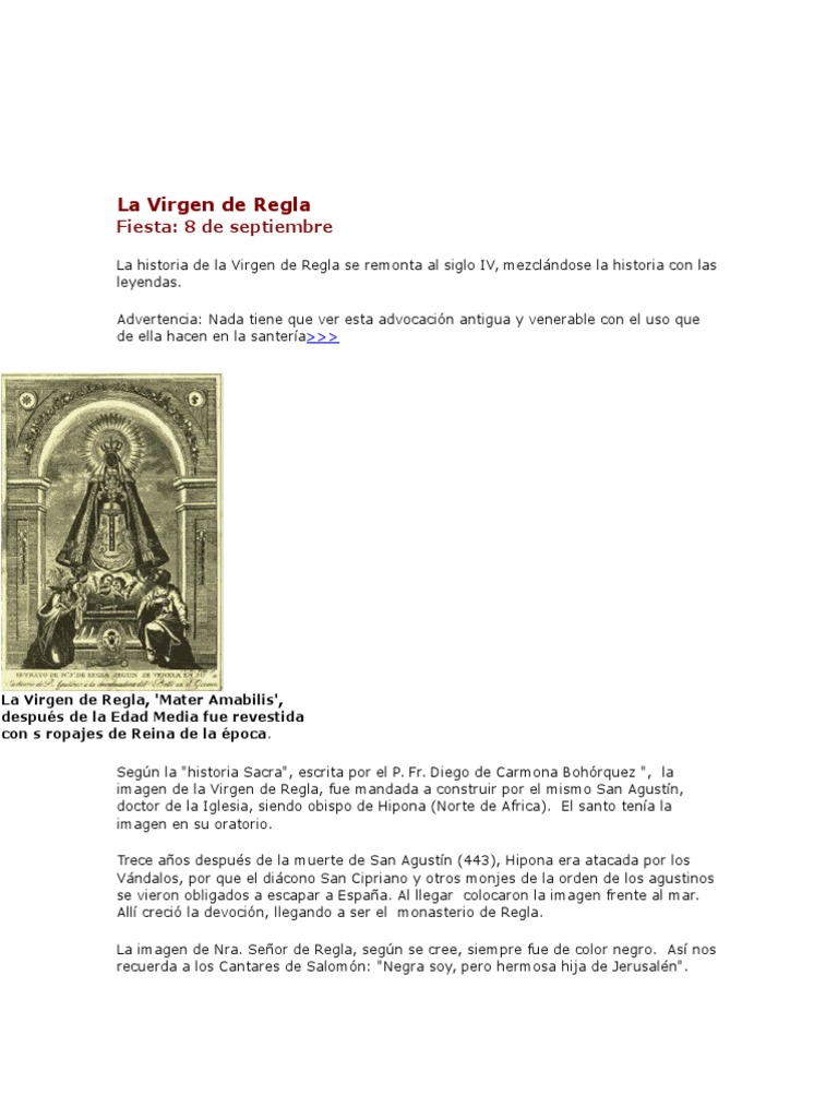 org Esta página es obra de Las Siervas de los Corazones Traspasados de Jesús y María.corazones.Historia de la Virgen de Regla La Virgen de Regla La Virgen de Regla en Chipiona Regreso a la página principal www. Copyright © 1999 SCTJM .