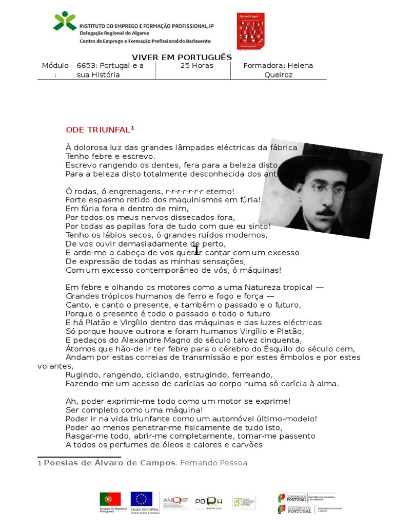 Nota: ODE - Poema lrico cujas estrofes so simtricas (versos possuem